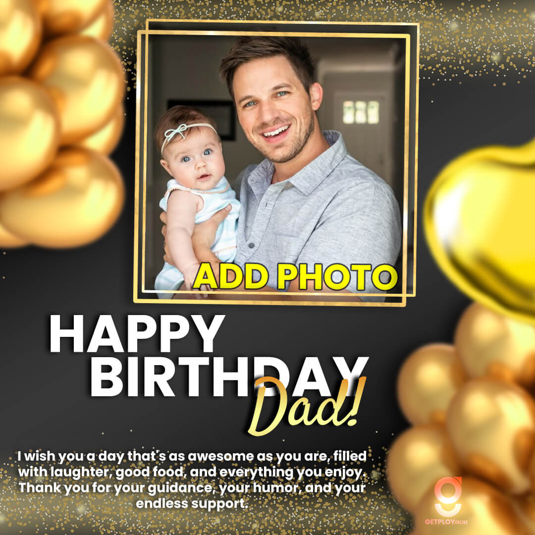Make your dad's photo fit into the happy birthday frame using getploy.online. With just a few taps, your Dad's photo will be edited and merged into a personalized happy birthday frame.